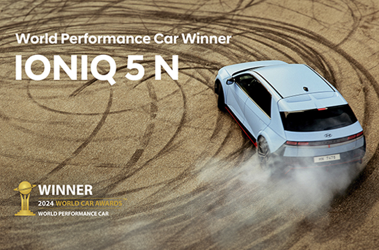 IONIQ 5 N คือรถยนต์ไฟฟ้าคันแรกที่รับรางวัลรถยนต์สมรรถนะยอดเยี่ยมแห่งปี 2024 (World Performance Car 2024) จึงทำให้ IONIQ 5 N เป็นตัวแทนของประสบการณ์ใหม่สำหรับการขับรถยนต์ไฟฟ้าสมรรถนะสูงจากสนามแข่งสู่ท้องถนน นอกจากนี้ IONIQ 5 N ได้กลายเป็นก้าวสำคัญของเราที่จะคิดค้นและพัฒนารถยนต์ไฟฟ้าในกลุ่ม N ต่อไปในอนาคต